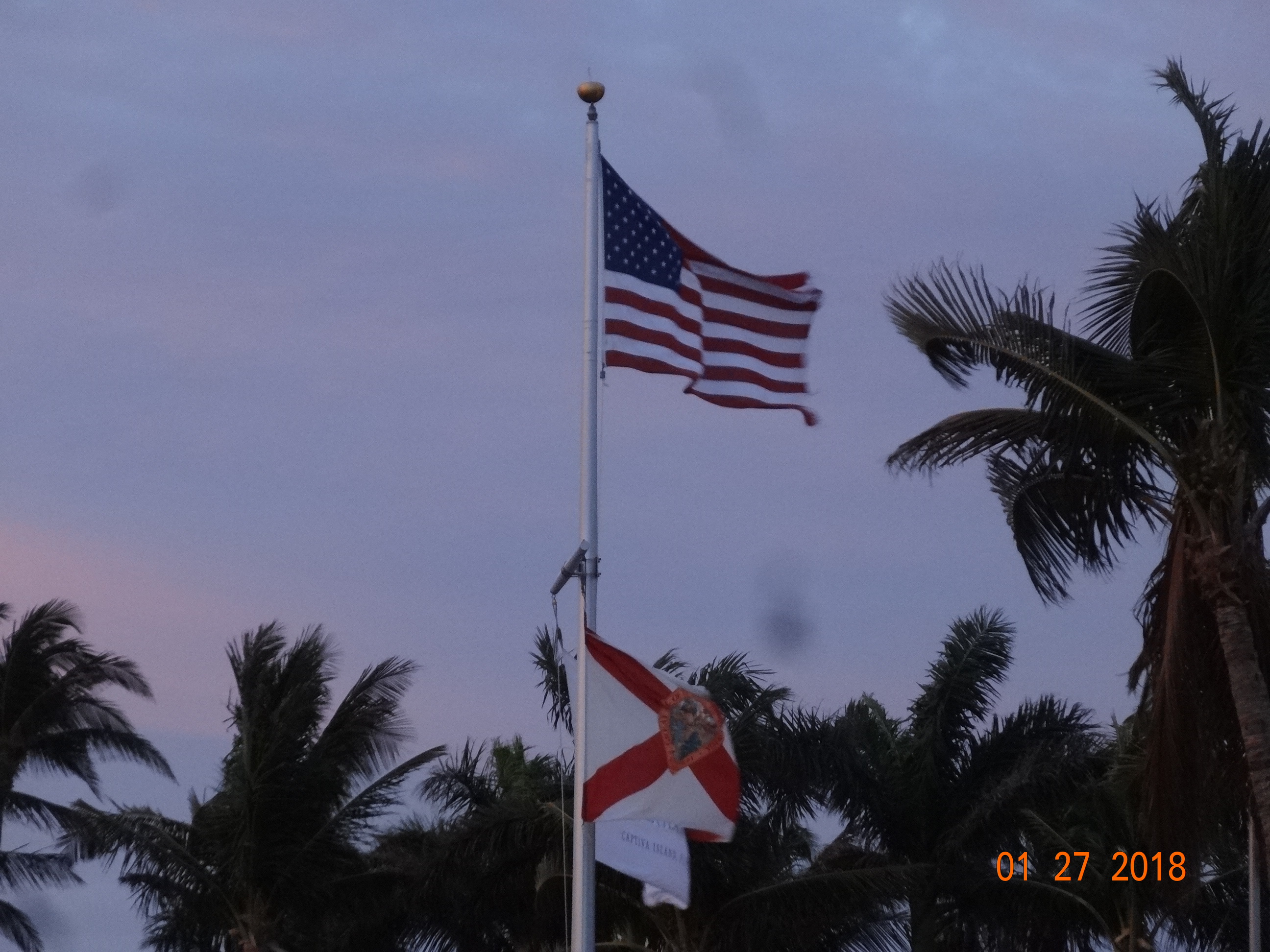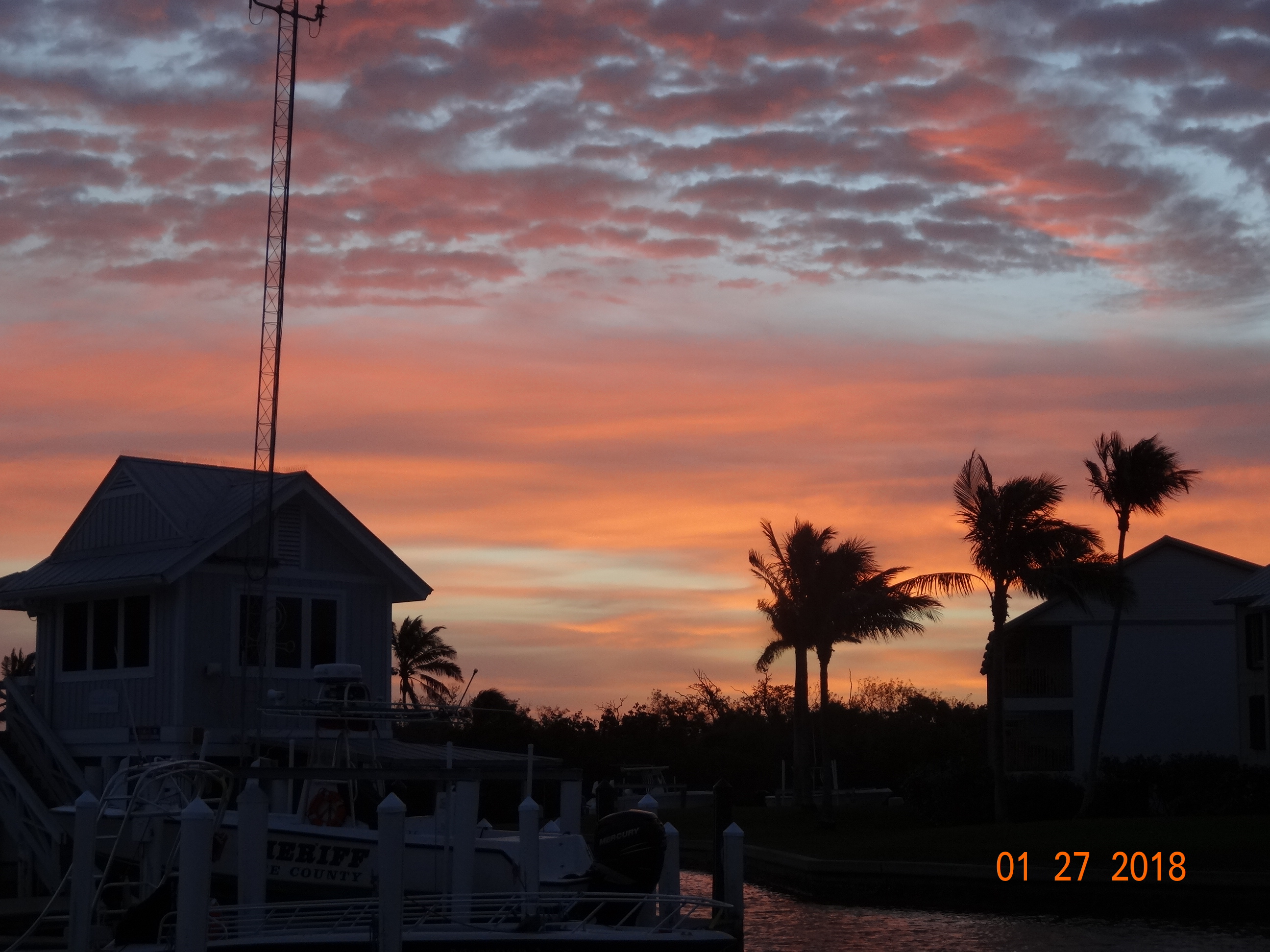 While we were sitting around enjoying the sunshine and sucking down some drinks, the marina had a cherry picker truck come in to take down the resorts Christmas lights that they put up on their palm trees every year. The owner of this truck did this for a living. Decorating and un-decorating tall things. What they did first was they had a guy on the ground that started to unravel the lights from the bottom up, as he unraveled them, he cut them off in 6 foot strips and dropped them on the ground. Then another guy in the cherry picker started from the top of the palm tree and unwound the lights from the top down and cut them off at 6 foot intervals then let the lights drop to the ground. There were 4 or 5 other people that were picking up the lights and rolling them into little balls. I’m not really sure why they bothered to roll them into little balls because they certainly weren’t going to use them again but they seemed to enjoy themselves. We figured it was cheaper and easier to just buy new lights every year than to take them down, store them and make sure they worked again next Christmas Season. I guess that is where my dockage money goes ![]()