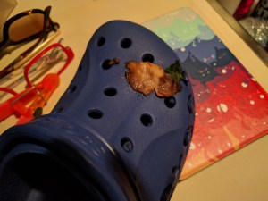 What is that disgusting thing on my shoe! Looks like a clam with seaweed stuck to it! Oh….it’s my mushroom. I guess I’ll have to pick up that slimy mess after all ![]()