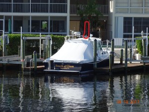 When we arrived at the marina, there were two guys there to help us tie up. That was good because we were on the side of the dock where the wind was pushing us away from the dock. We tipped them good ;). The marinas down here are good for the first mate, you only have to toss them lines and they do all the tieing off. Keeps me from having to jump off the boat, always a good thing in my book :).