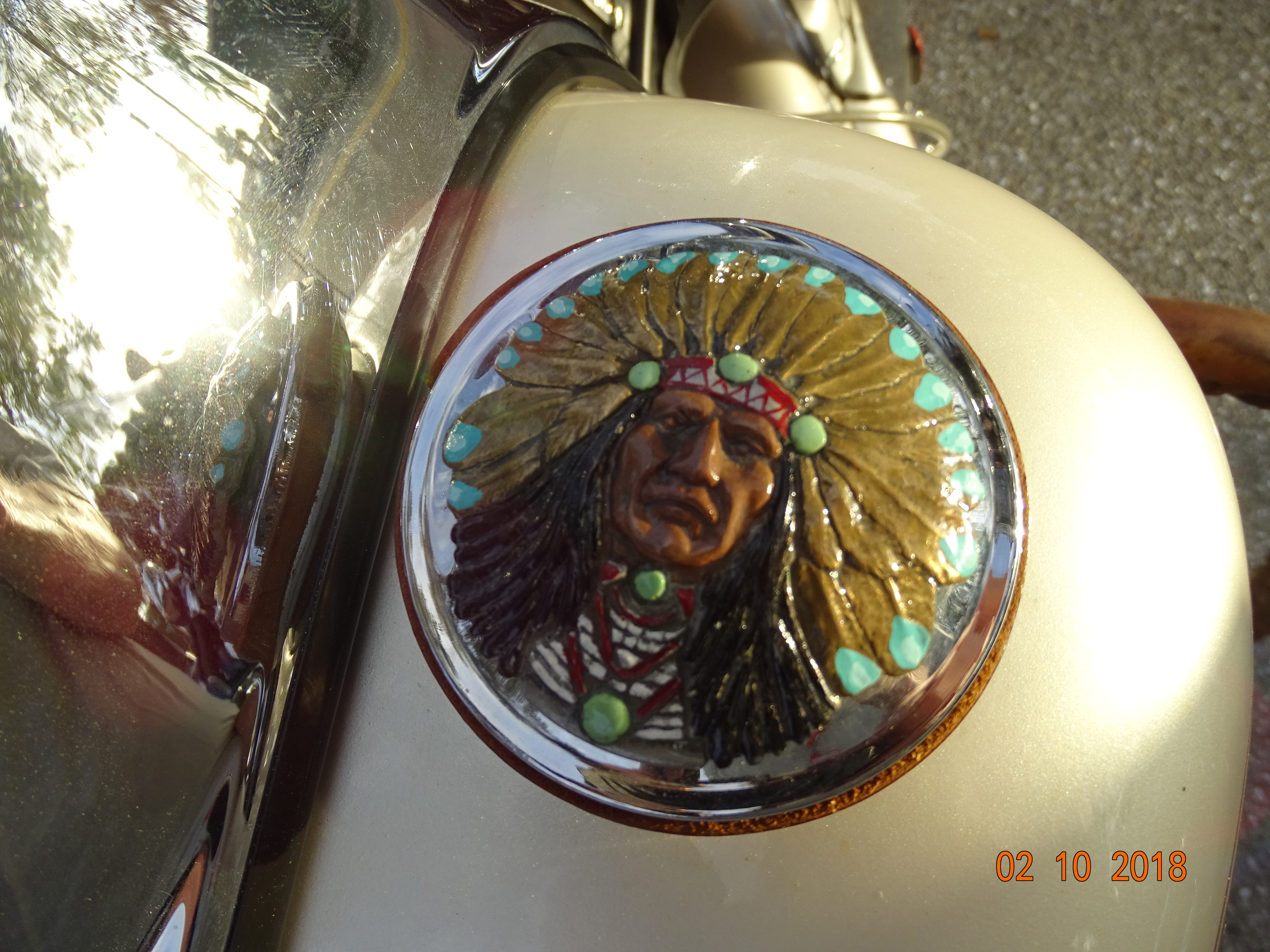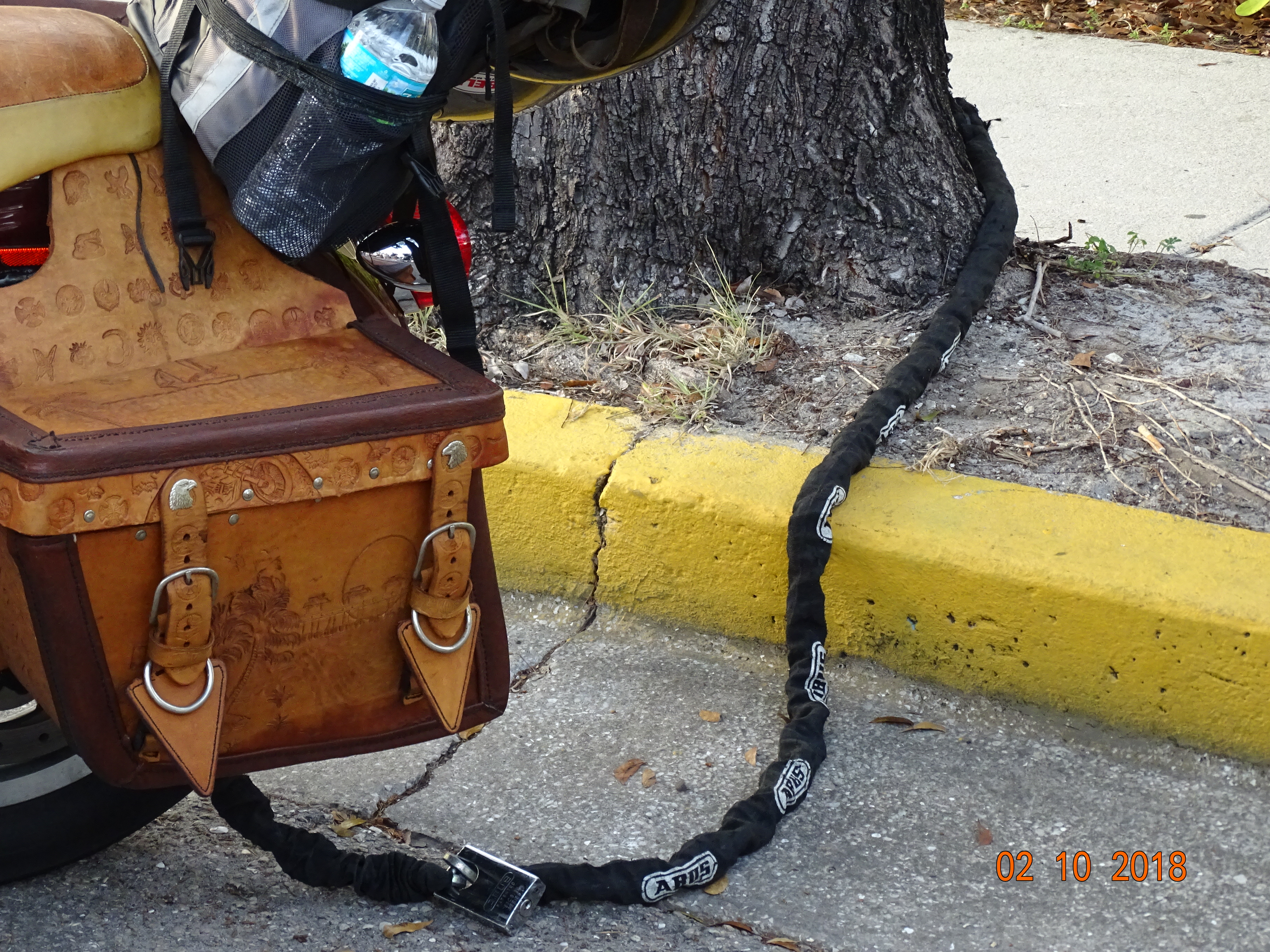 First time I have ever seen that before. And look at his saddle bags. Looks like he just got a new leather stamping kit and had to try every one out on his leather bags.