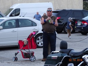 It is a couple of days before Valentine’s day and I’ll give this biker guy credit for dressing up like cupid, diaper and all. You had to pay to get your picture taken with him and then the money was going to breast cancer research.