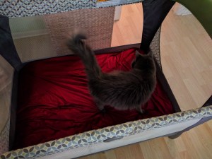 Now we have to set up a sleeping spot for the littlest Prince. This Pack-N-Play really does the trick
