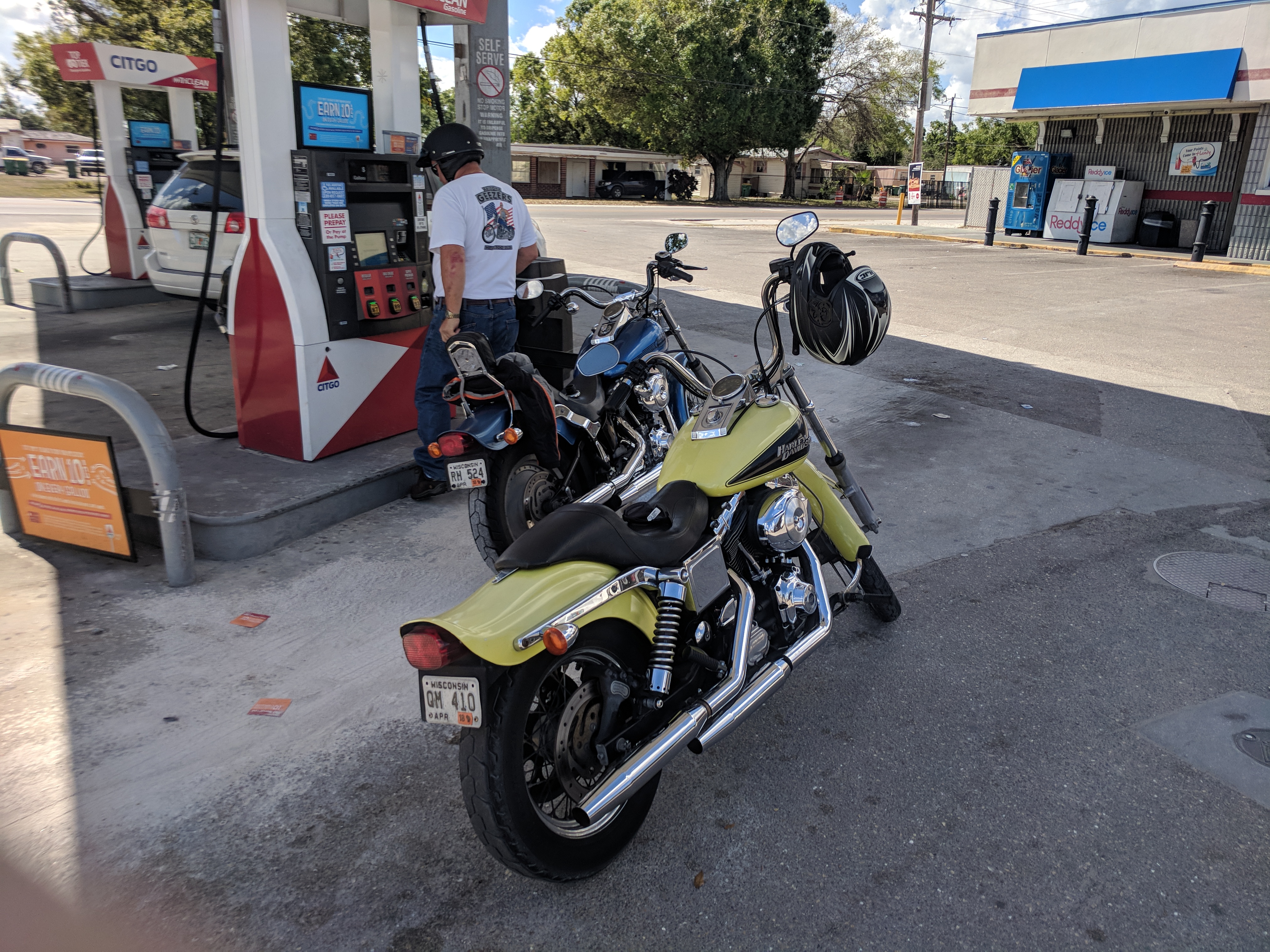 Not much to look at but for $70 for the bike and $20 for insurance, not a bad price for a day of bike riding.  Gary had scouted out a route beforehand to make sure they didn’t end up on a freeway and to make sure they had something to look at.  They drove to Everglades City and back.  They did see some alligators on the road, some were very close and scared the crap out of our Pat LOL.  Gary had to pick some bugs out of his teeth, unfortunately the bikes didn’t come with windshields.  Oh well, you can’t expect much for $70 :).