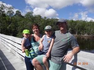 While they were on the bike trip, we went to 4 Mile Eco Park which was just down the street from us.  It was a good start to their vacation because most of the trail was tree covered which kept everyone in the shade.  They did have a few docks that went out in the river.  See this picture