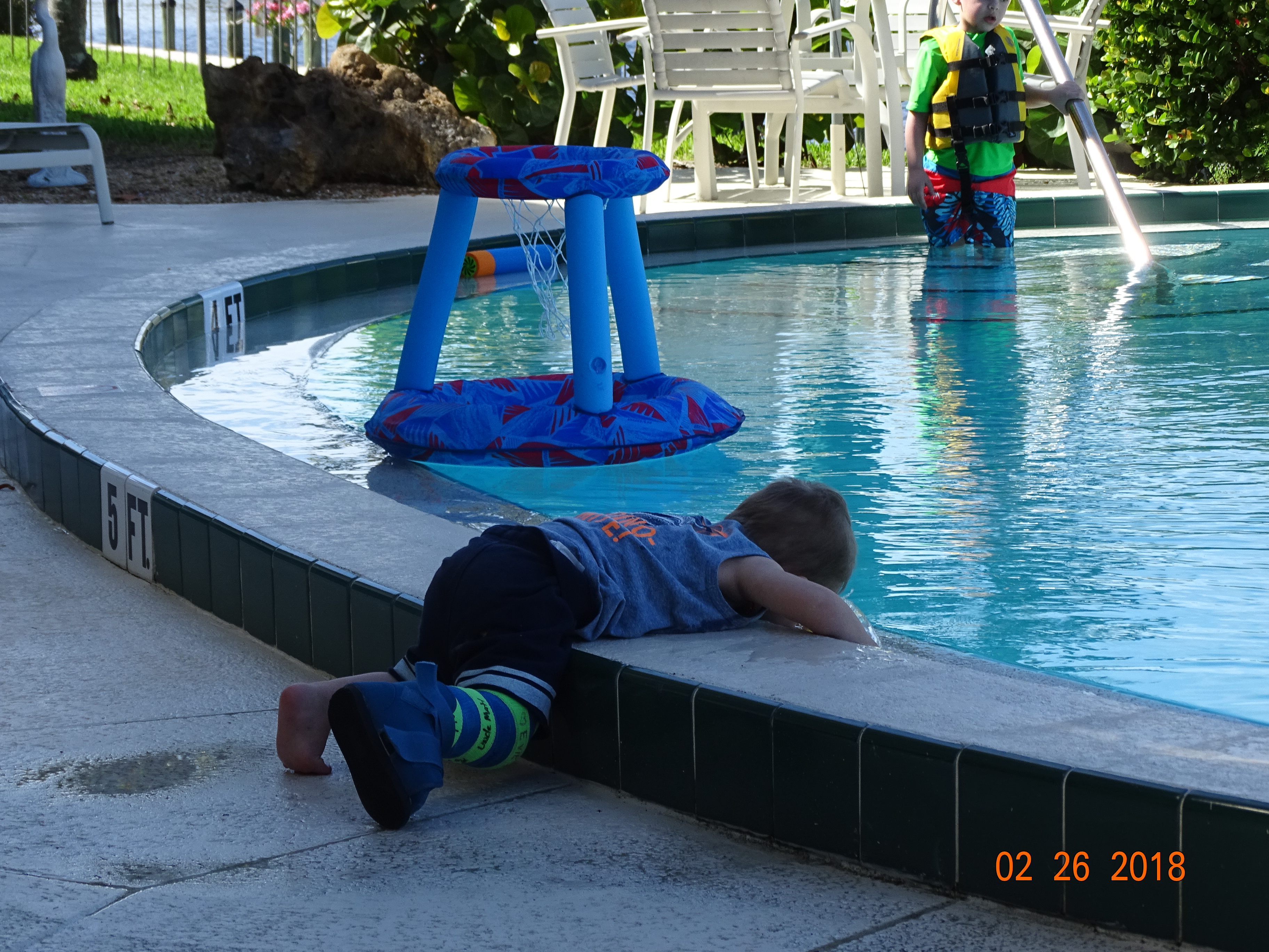 They cut the cast off, took an X-ray and decided he was good to go.  So it was off to a well deserved swim in the pool