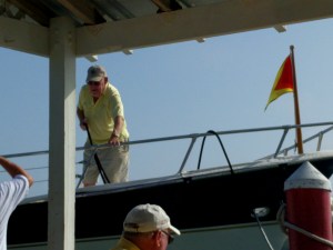 Yup, they have the red running light on the starboard side. It should be on the port. What???? Finally Gary can’t stand it any longer and goes over to the owner to tell him about his lights