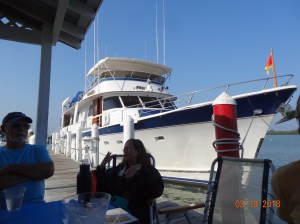 The first night we have our pot luck on the dock. There was this large boat tied up there.