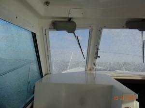We started our trek home and the winds were everything the weather apps had predicted. The waves were hitting the bow, shooting up the windshield and pouring off the canvas