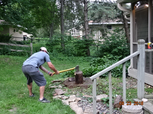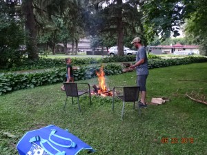 Only one child got burned making s’mores, just glad it wasn’t one of ours .  Then for the adult males that wanted to blow off a little testosterone, there was the game of who could chop the most wood