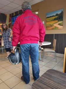 You can see Gary put on some chaps for the ride…..no wait…..that’s a wet crotch from riding in the rain.  Poor Gary.  The front of him was entirely wet.  What a Dad!