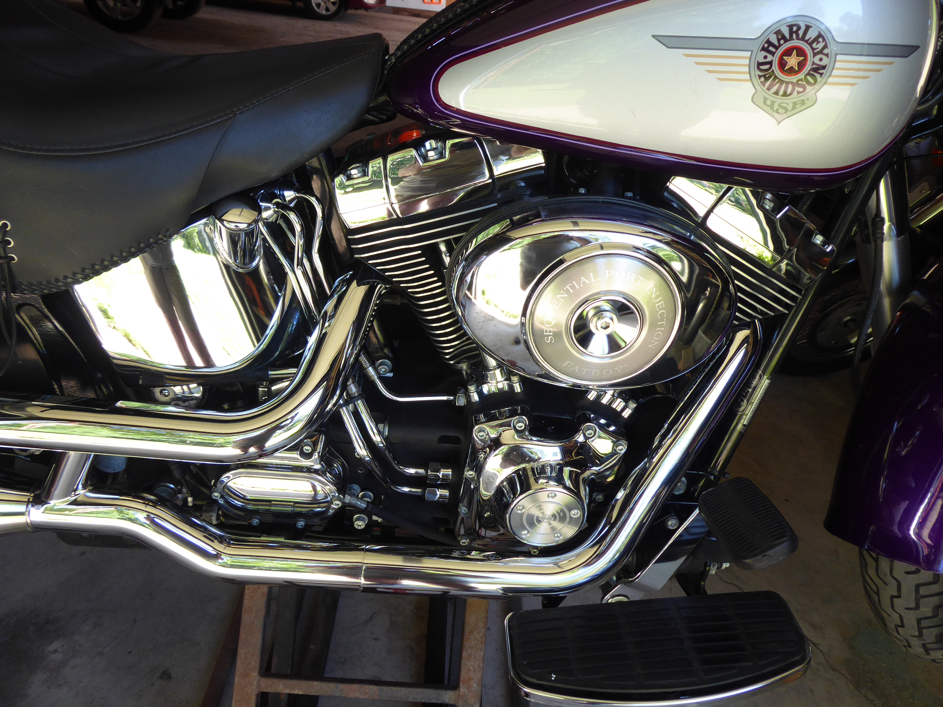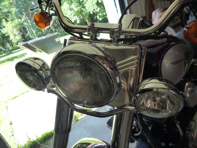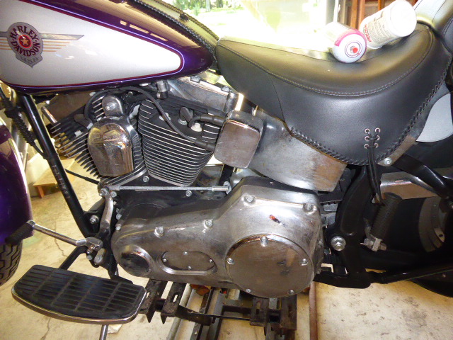 Luckily, my brother, owning a few motorcycles of his own, had a bike lift.  It lifted the bike off the ground and just at the right level so you could sit on a rolling chair and do the cleaning and waxing.  That helped save an old back.  Gary put quite a few hours into cleaning and polishing but once he was finished