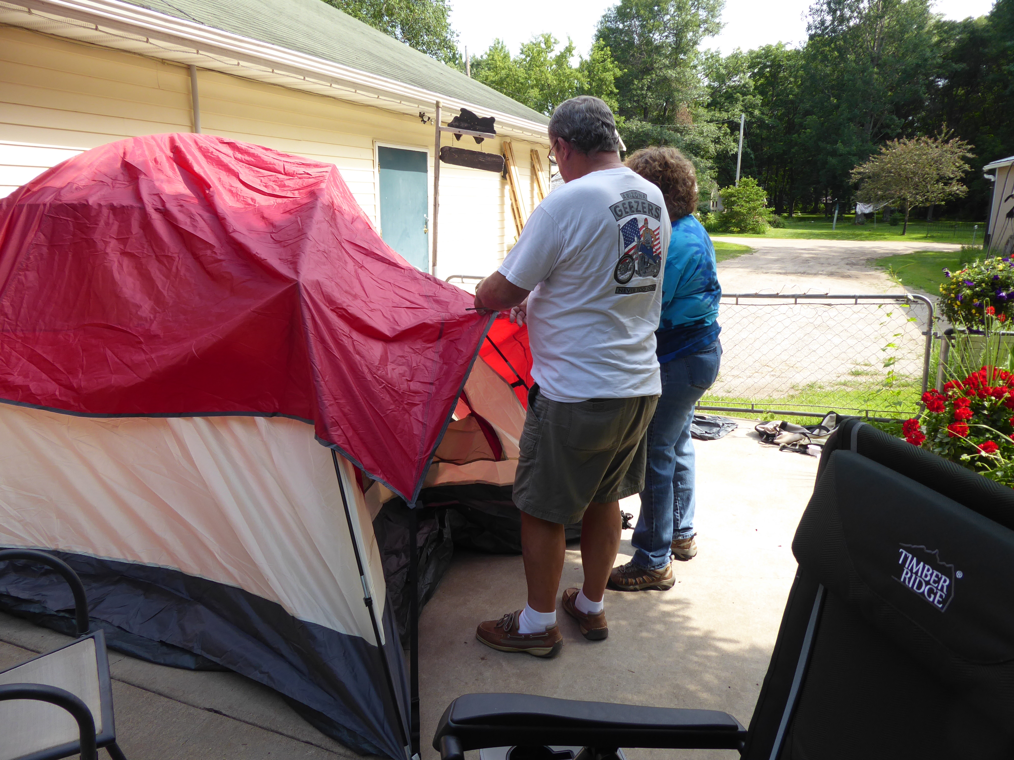 While we were up there, someone placed what looked like a brand new tent by the county trash containers.  We called our daughter to see if she’d be interested in it and she was.  We decided to put it up to make sure there was not damage or had any missing parts.