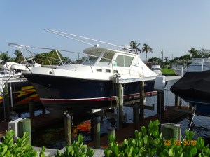 As you have probably figured out by now, we head north a couple of times a year.  Summertime being one of them.  We know we better show up for the youngest grandson’s birthday or our heads will be on the end of a stake.  But, before we leave, we have to put the Touch of Class to bed.  If you remember, we had a lift installed early this year so we could save the $70 per month bottom cleaning.  Gary assured me we would see the savings in no time once the lift was installed…….hmmmmmm, I think he just wanted the boat to look manlier