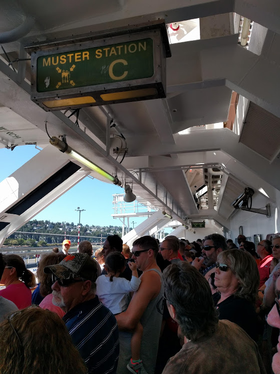 and listened as they announced various scenarios for the drill. I’m disappointed we couldn’t wear our life jackets to our drill ![]()