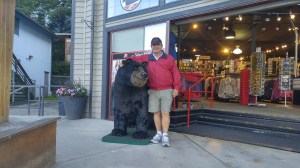 The girls were dressed like 1800 bar maids and ours gave me crap when I ordered a Bud Light…”You come all the way from the lower 48 to Alaska and you order a Bud Light?”. Ok, you got me, I ended up ordering an Alaskan brew….not to bad. We also decided to take a little walk thru the shops. Gary found himself a new friend
