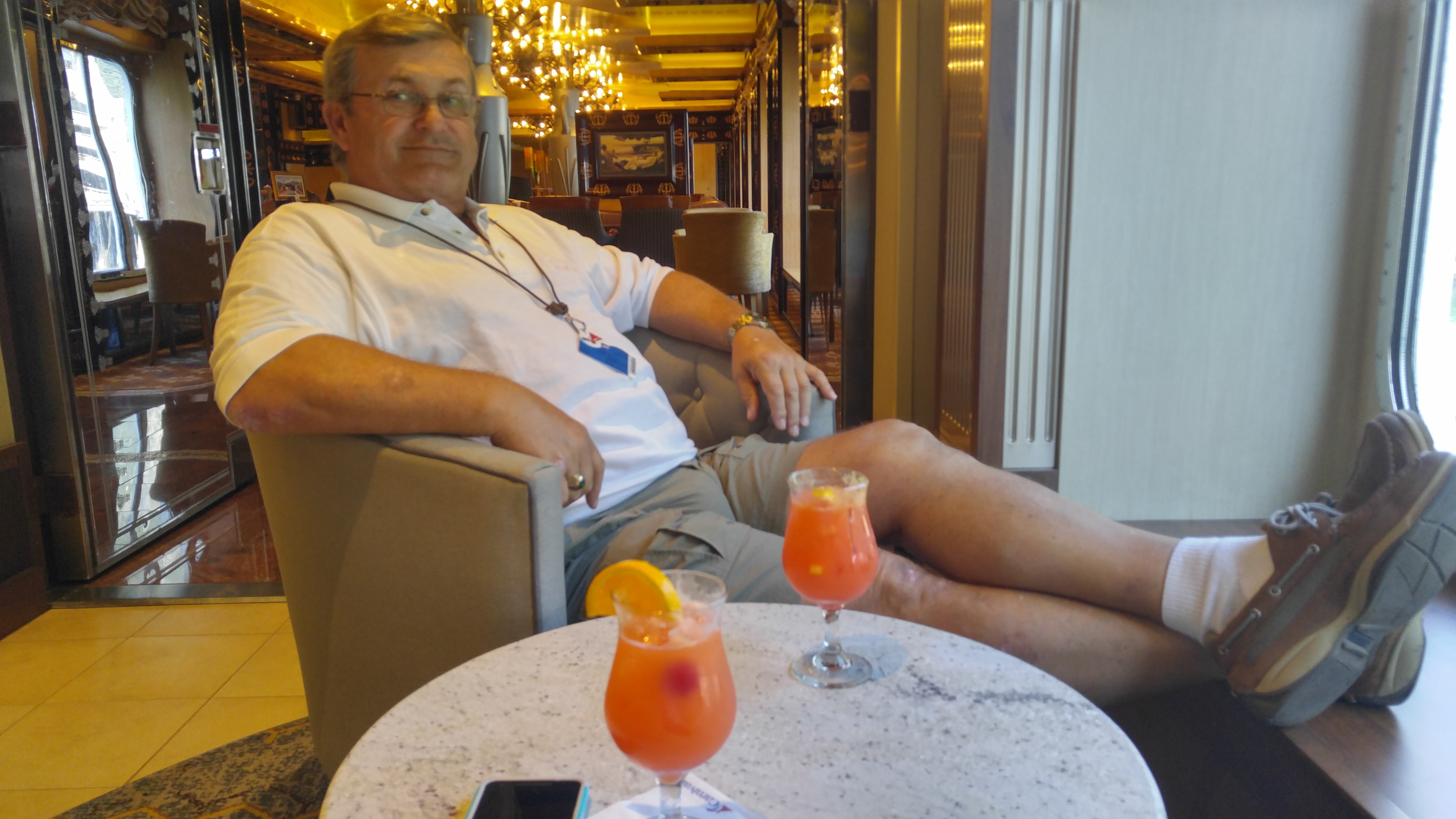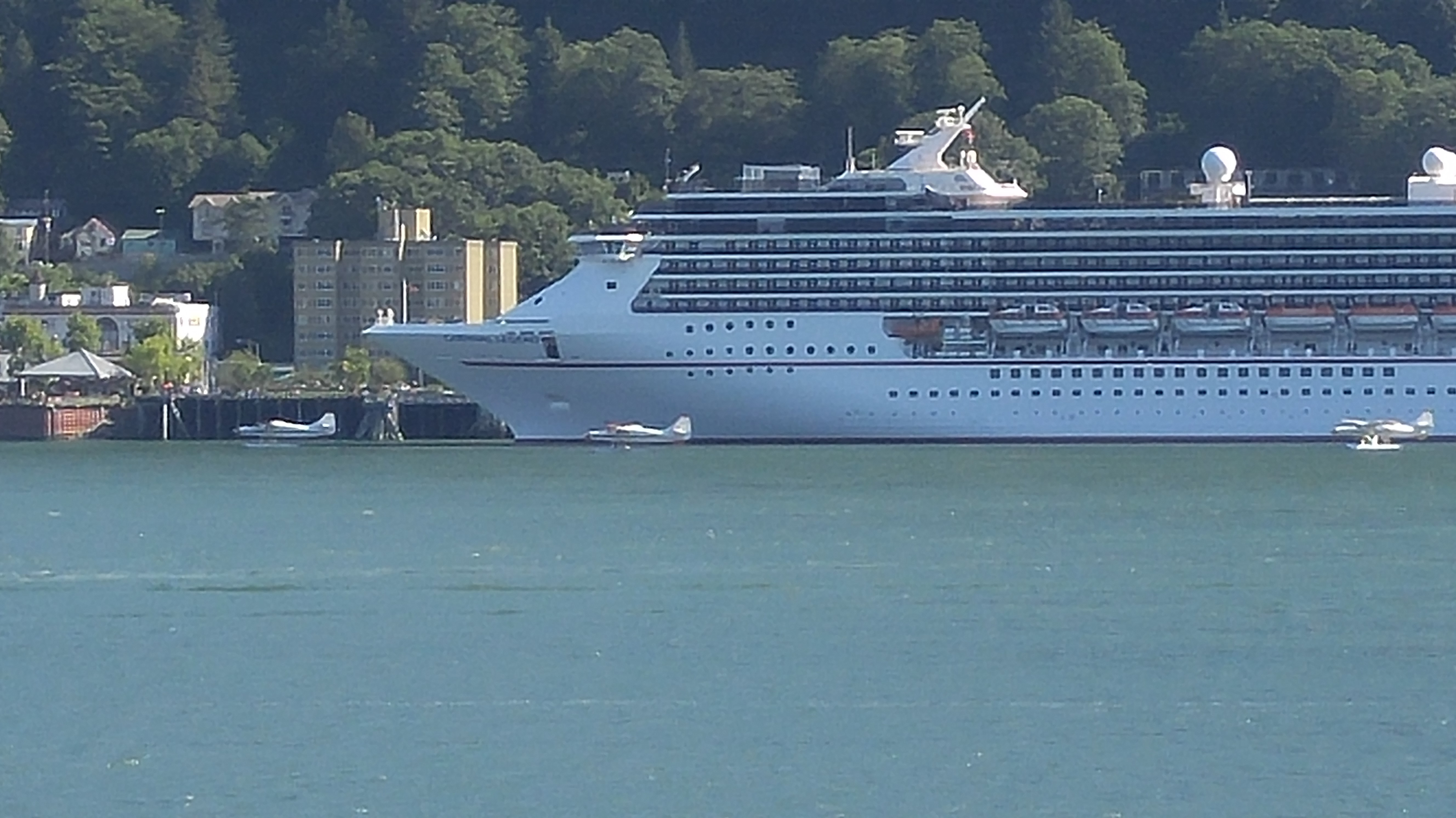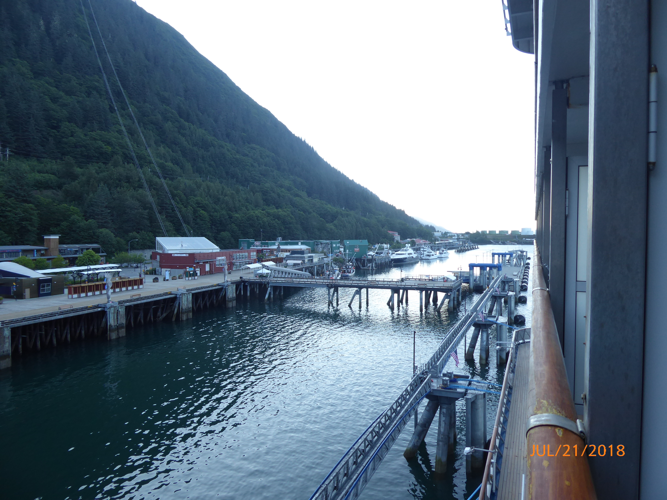 While we waited for the time for our excursion in Juneau to start, we were having some bloodies on the aft deck. There was a ship behind us that was getting ready to ship off.