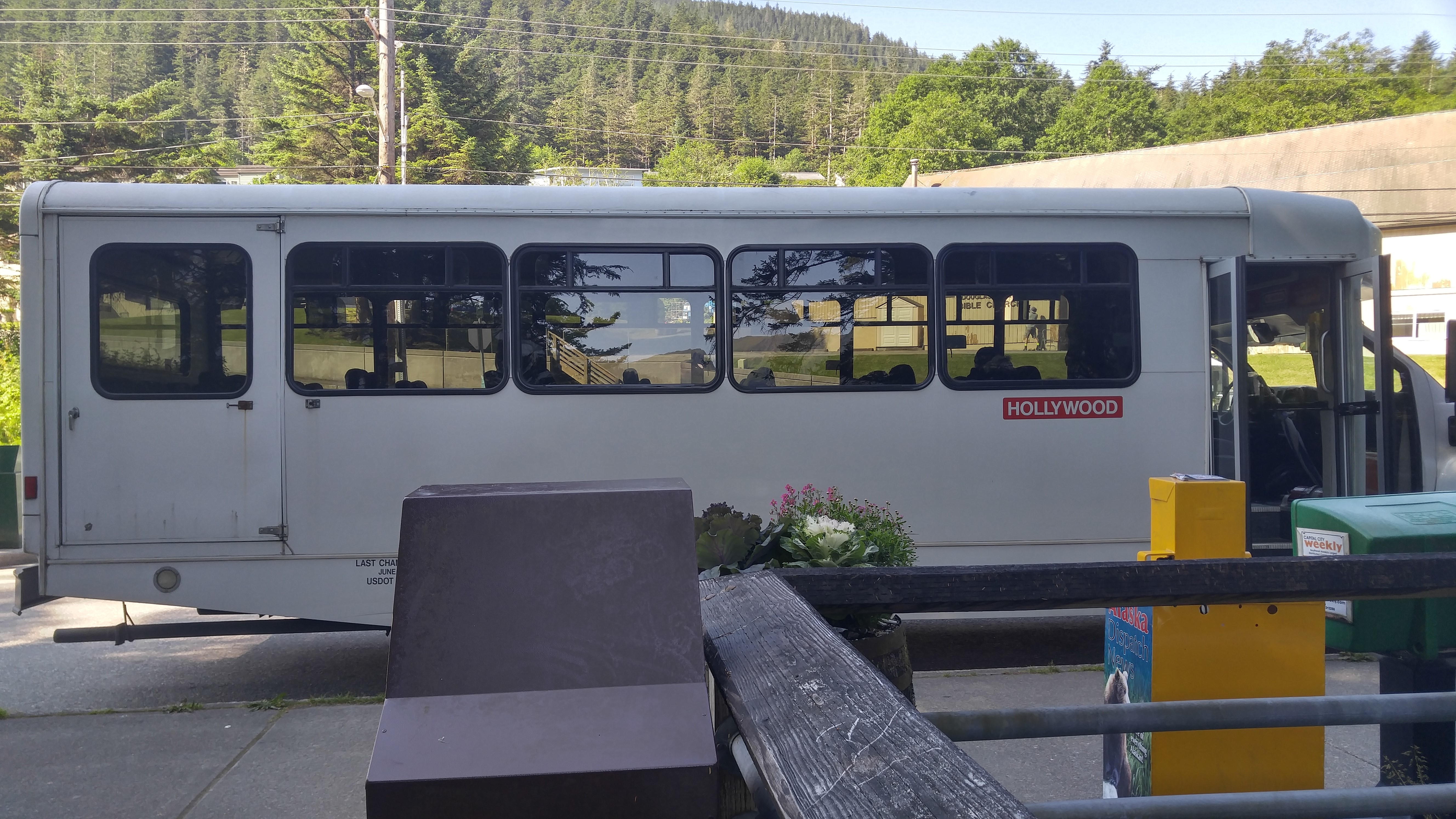 and started our tour. Turns out our bus driver was an actual person that lives in Juneau. He told us how the state of Alaska pays each and every citizen of Alaska $1000 per year if they live there for a year. That can go along way to paying for your kids education or if you don’t have kids, how about a cruise to the lower 48? Well, anyway, the guy took us across the water so we could get a picture of our ship