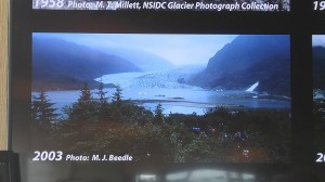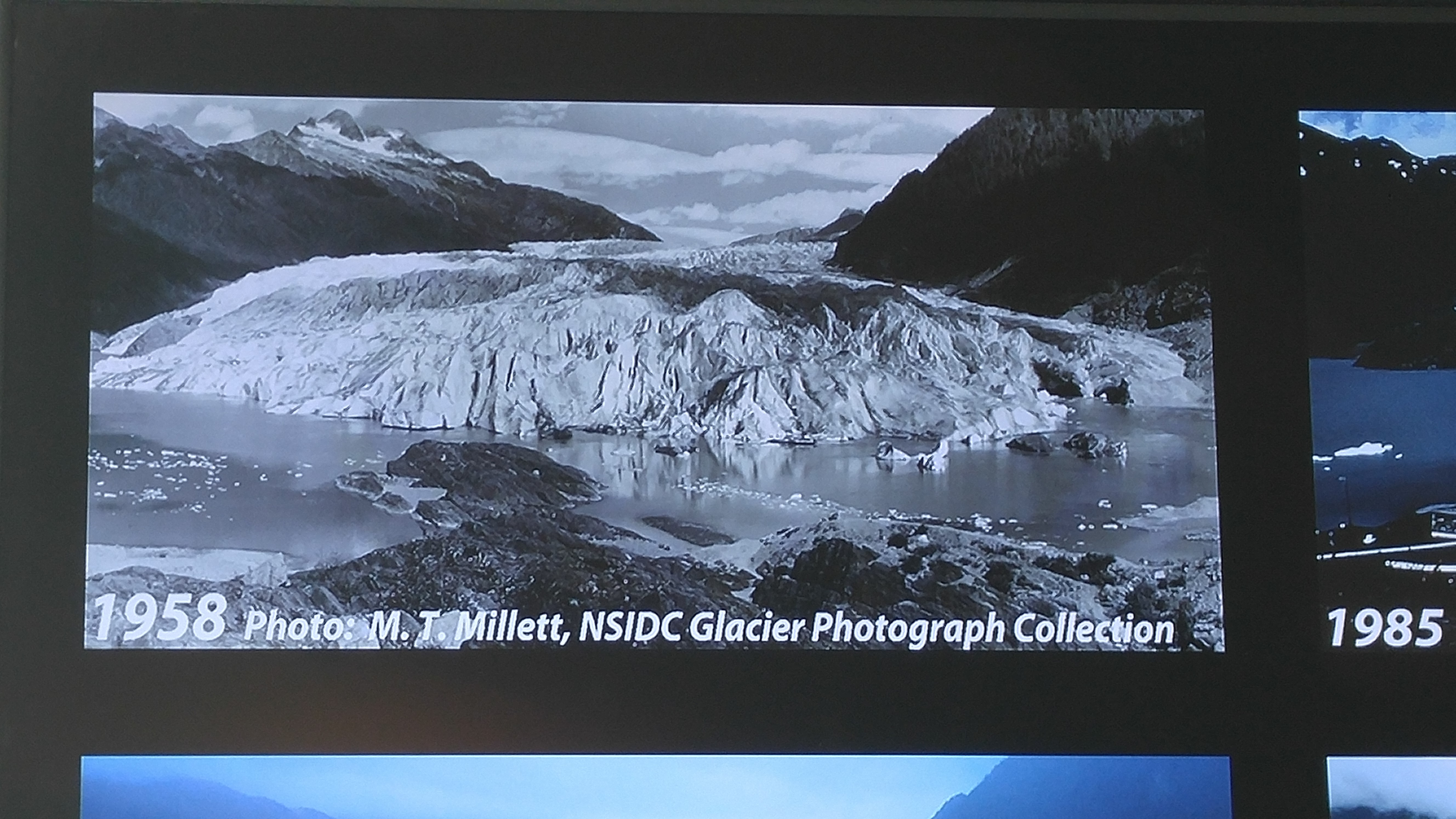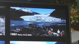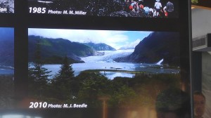 See all those float planes hanging around the bow? They look like toys next to the ship. This ship is supposed to be the length of 3 football fields. For those of you that don’t watch football, that’s 1080 for 3 of them. That made me feel like I was getting some exercise on the ship when we walked from end to end going to the various bars. Anywho, our next stop was the Mendenhall Glacier. Apparently they have had to move their visitor center twice