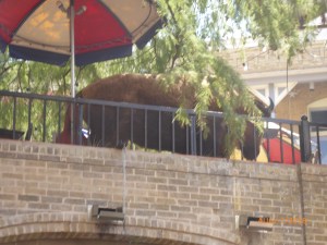 We had a good time on the boat ride and even though it was pretty hot, once the boat got going it was a little cooler. When we got off the boat we decided to take a little walk on the River Walk and find us some chow. I saw this and wondered what it was