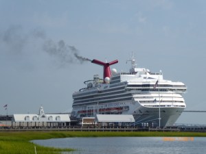 We were all pumped for our second day.  We had tickets for a horse carriage tour around downtown Charleston.  We raced downstairs to have breakfast and get our name on the shuttle list.  Dang it!  The only place the shuttle goes to is the cruise docks.  They give people who are going on a cruise a discount on the hotel room and a shuttle ride to the boat if they spend their 1st night in their hotel.  Good for them, bad for us.