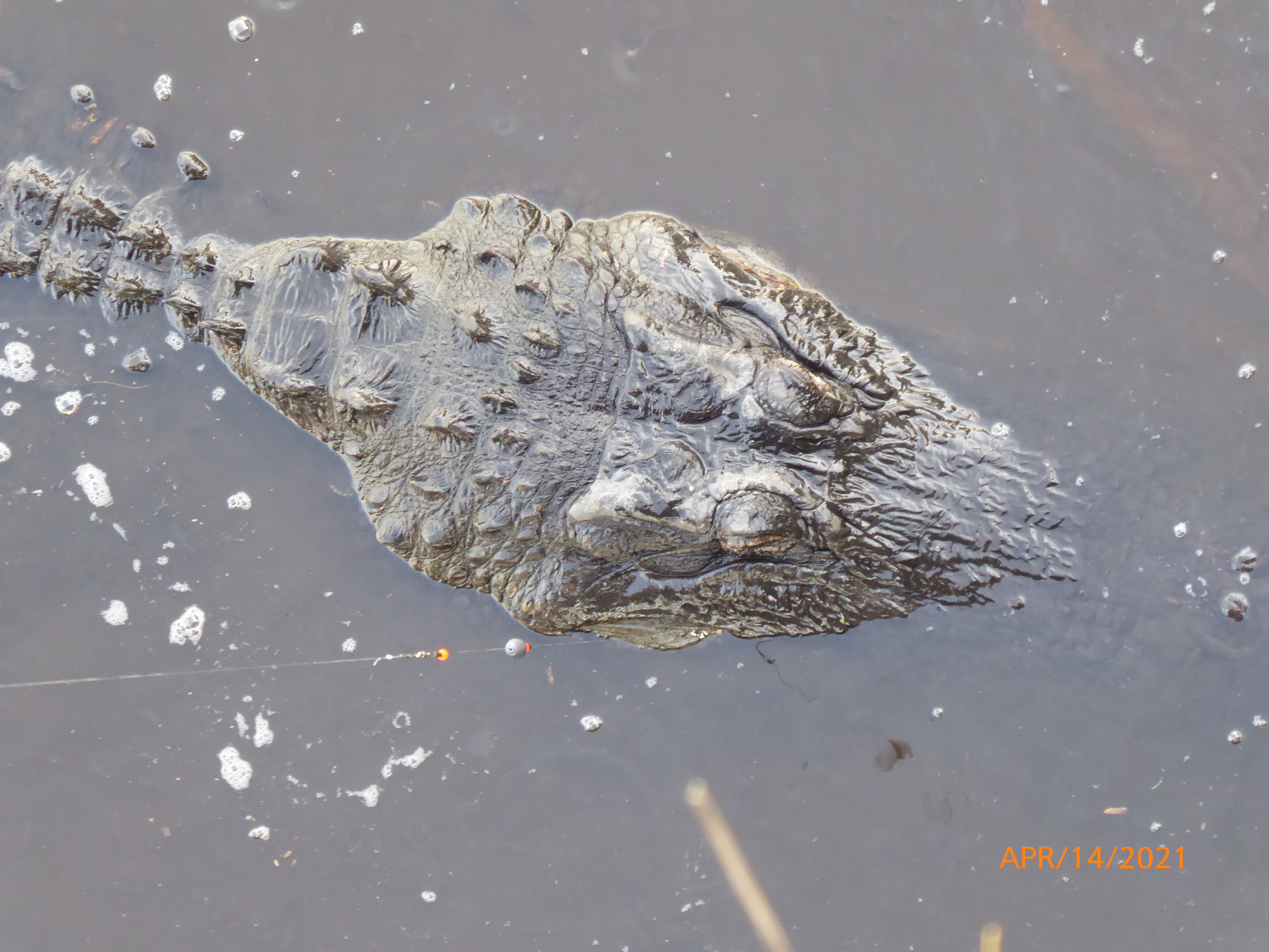 On the way back there was a guy fishing on the bridge. Next thing we knew he got a bite. The alligator that had been watching figured he had a free lunch and started swimming real fast to the guys catch. Gary is yelling “Reel faster, reel faster”, the guys “I’m reeling as fast as I can!” Apparently not fast enough.