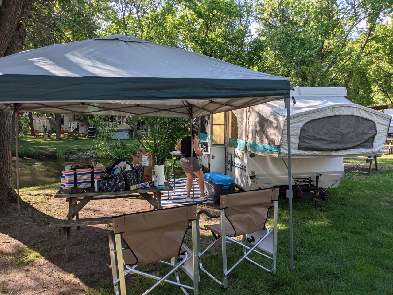 My daughter arrived before us and had her site all set up. We just brought over our chairs and helped set up the open sided tent