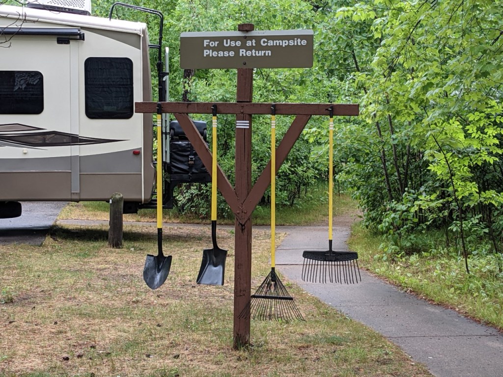 Anyone know what that is? I didn’t either, I had to ask the Park Ranger. Because the picnic tables are plastic coated, this thing is a place to set your hot pans so you don’t melt the plastic. I guess they have learned over the years. I don’t know about you but I have hot pads in Kermit for just such an occasion. But people were raised differently I guess.