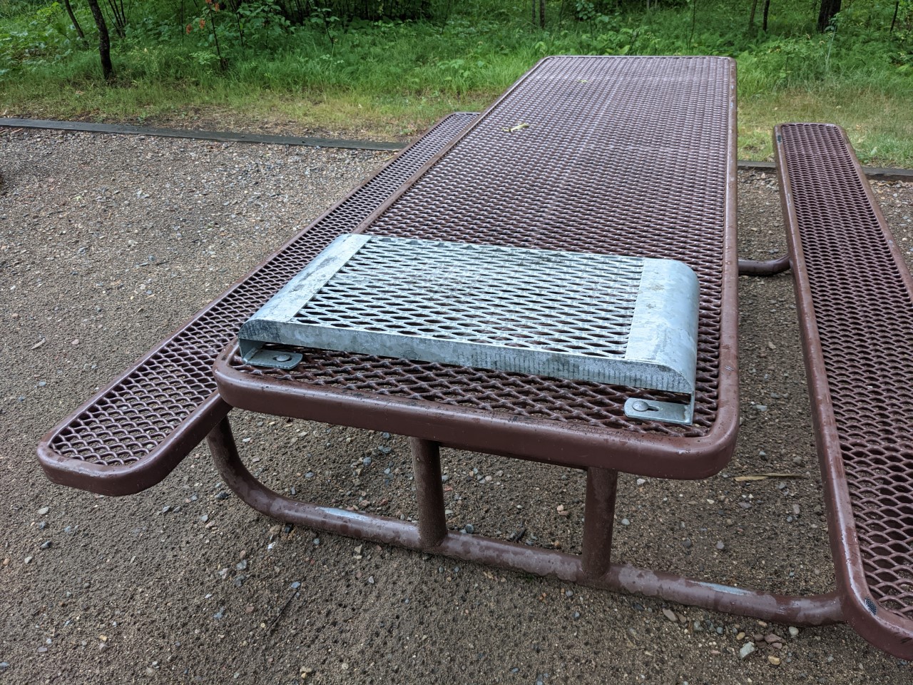 Our picnic table was metal encased in plastic, (better and cleaner than the wood ones) and it had this thing on one end