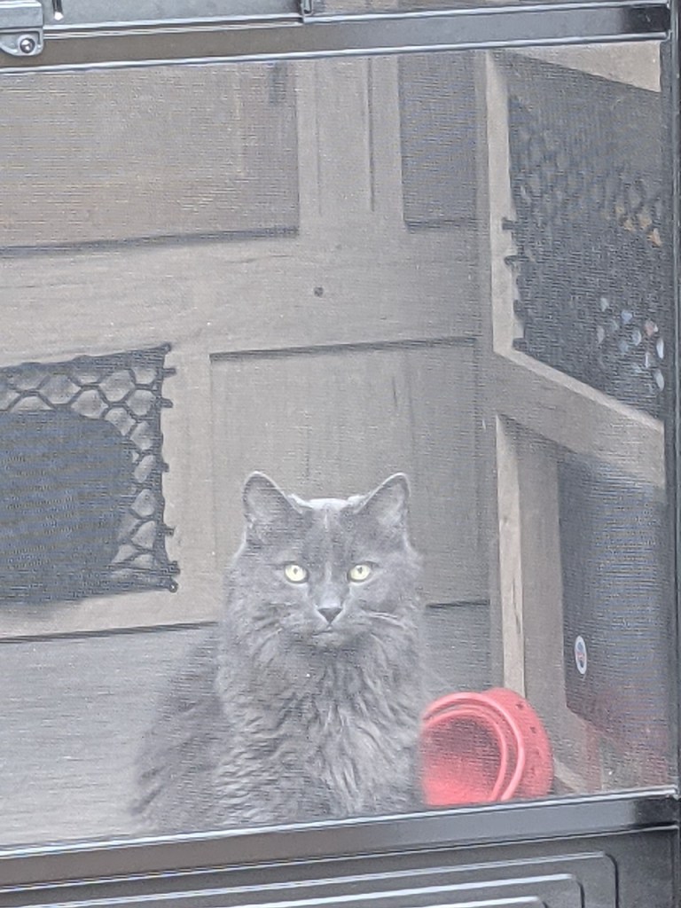 Poor Smokie, he can’t come out to be by the fire. Can you imagine that if he got too close and caught his tail on fire, MEEEEOOOOWWWW!