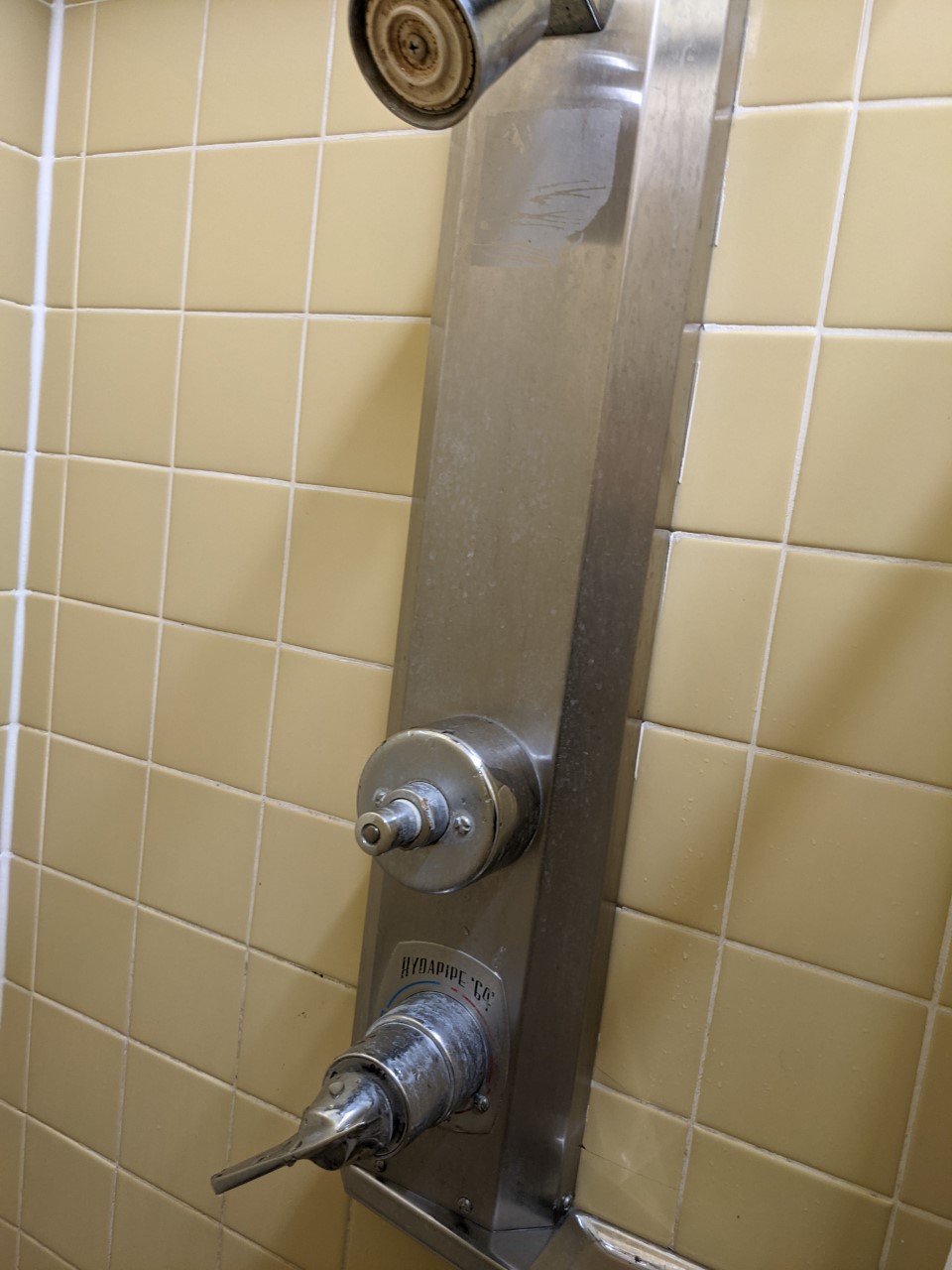 This was a push button shower. You pushed the button above the on/off valve. It seemed like it only worked for like 15 seconds, so you were pushing it quite a bit. If you were thinking about taking a nice long hot shower, you can forget that or else you’re gunna have a really sore finger by the time you’re done.