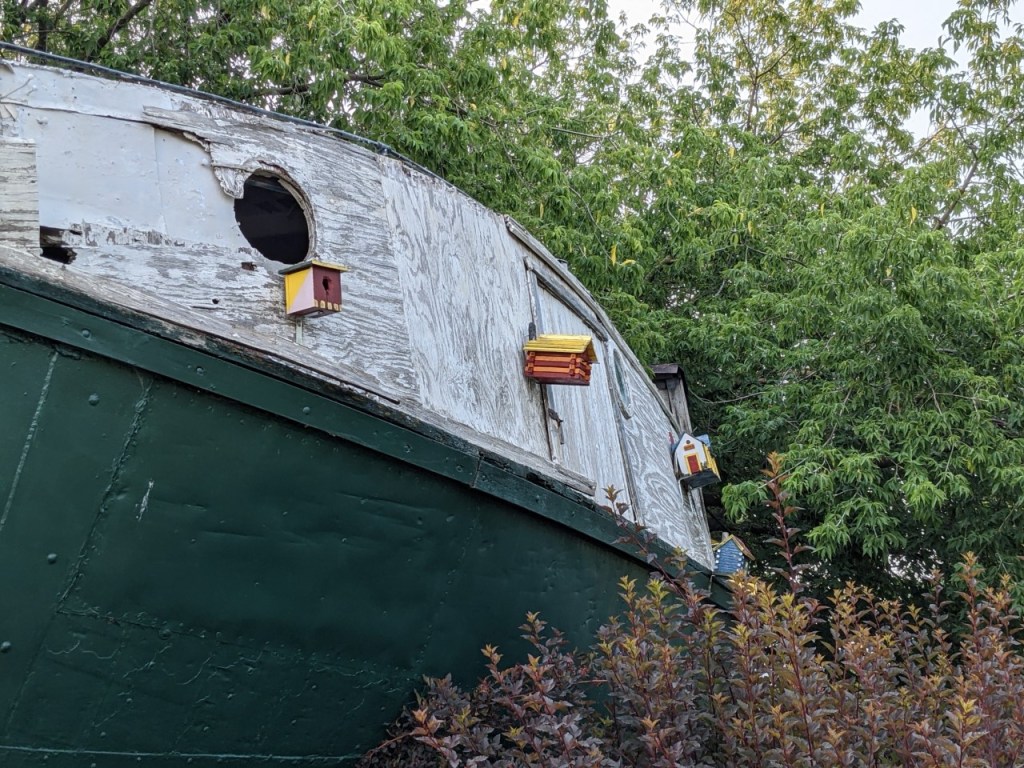 They had a few old commercial fishing boats in this park. This one they added some little bird houses to them.
