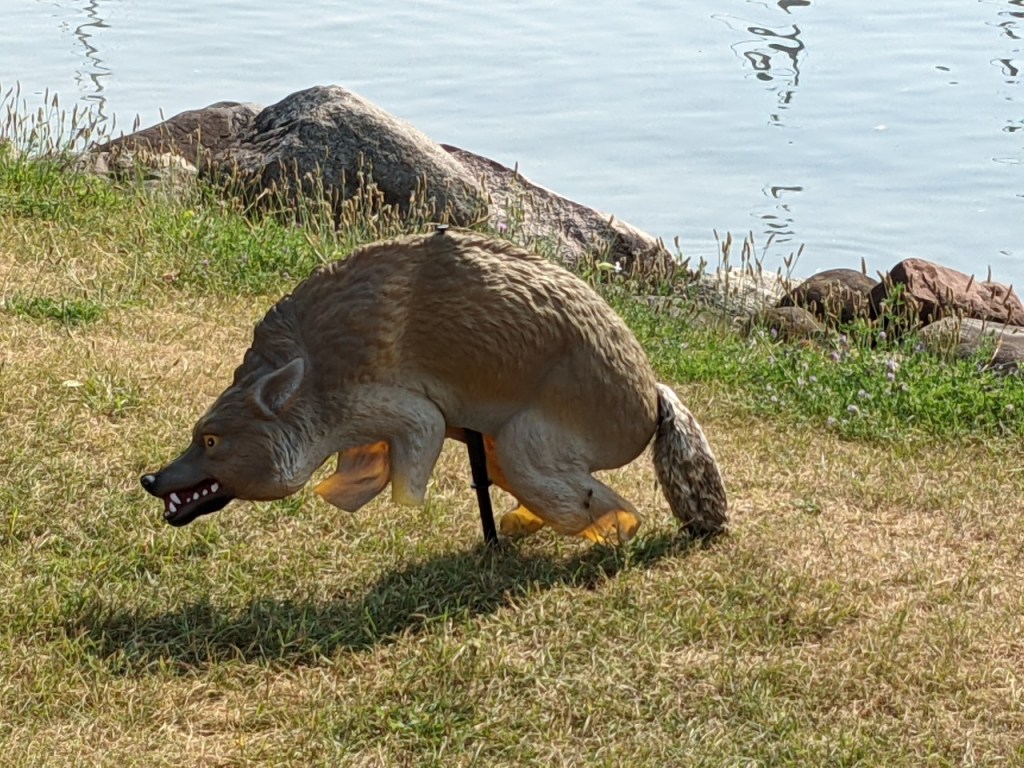That’s a funny position for that wolf … and why no legs? Unless they spin in the wind? Then maybe legs would slow them down 😉