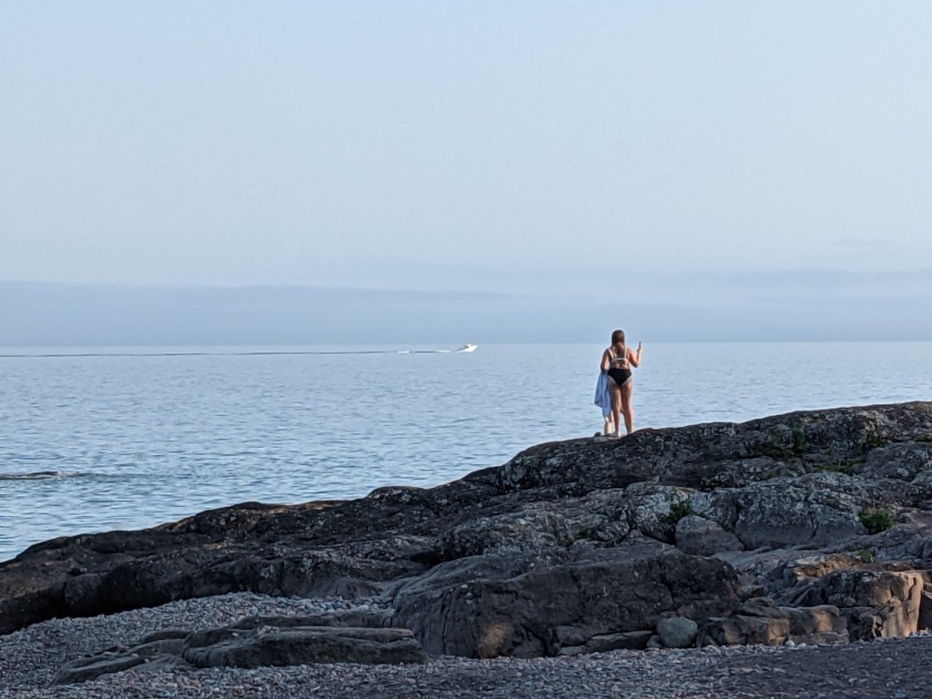 That night, after dinner, we went back down to the “beach”. Look! Someone’s going swimming!