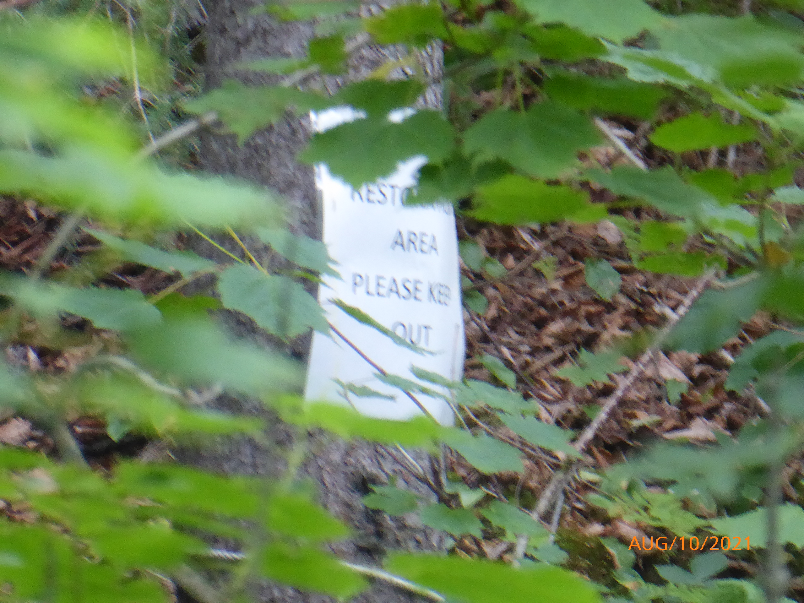 I saw this sign….but I didn’t see any place to rest nor anyone doing their business in the woods. Rebels that we are, we just ignored it and kept walking up the path past the sign.
