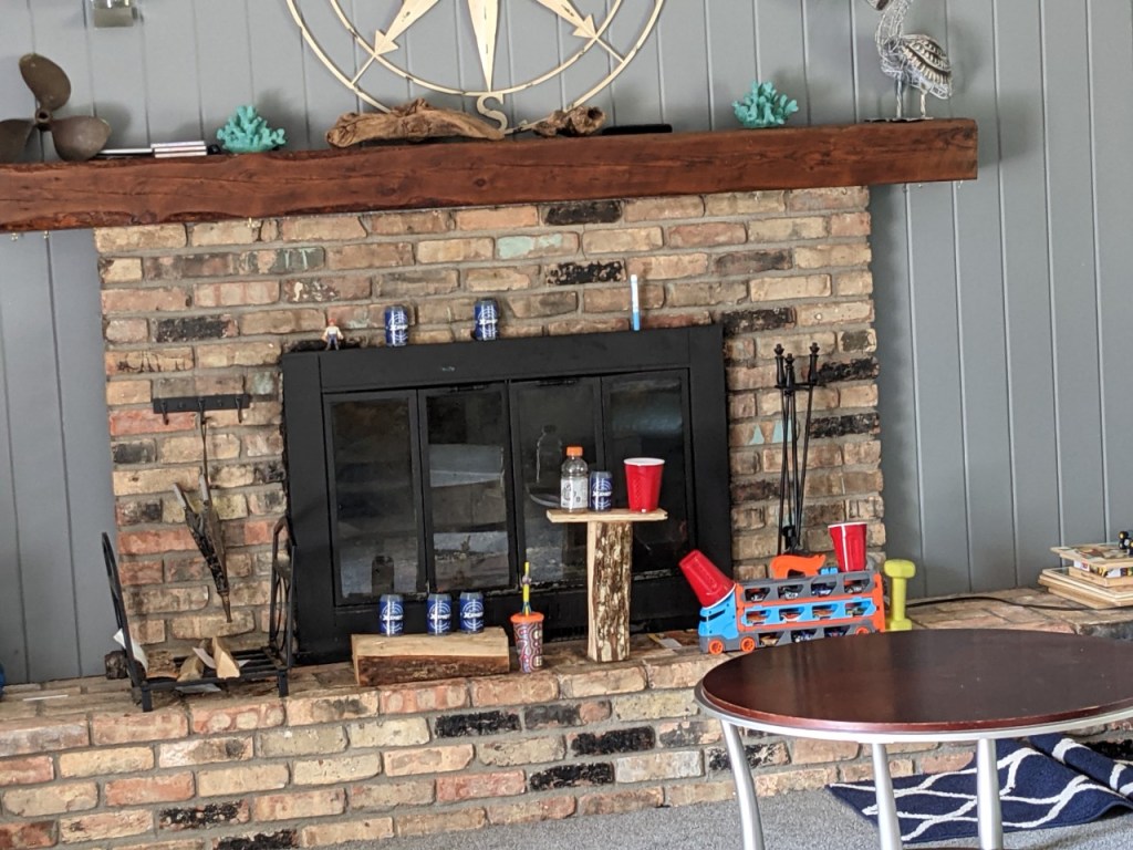 We were lucky to have this nice fireplace as a back stop. No the items above the wood mantel were not part of the targets Mom. And we didn’t break anything