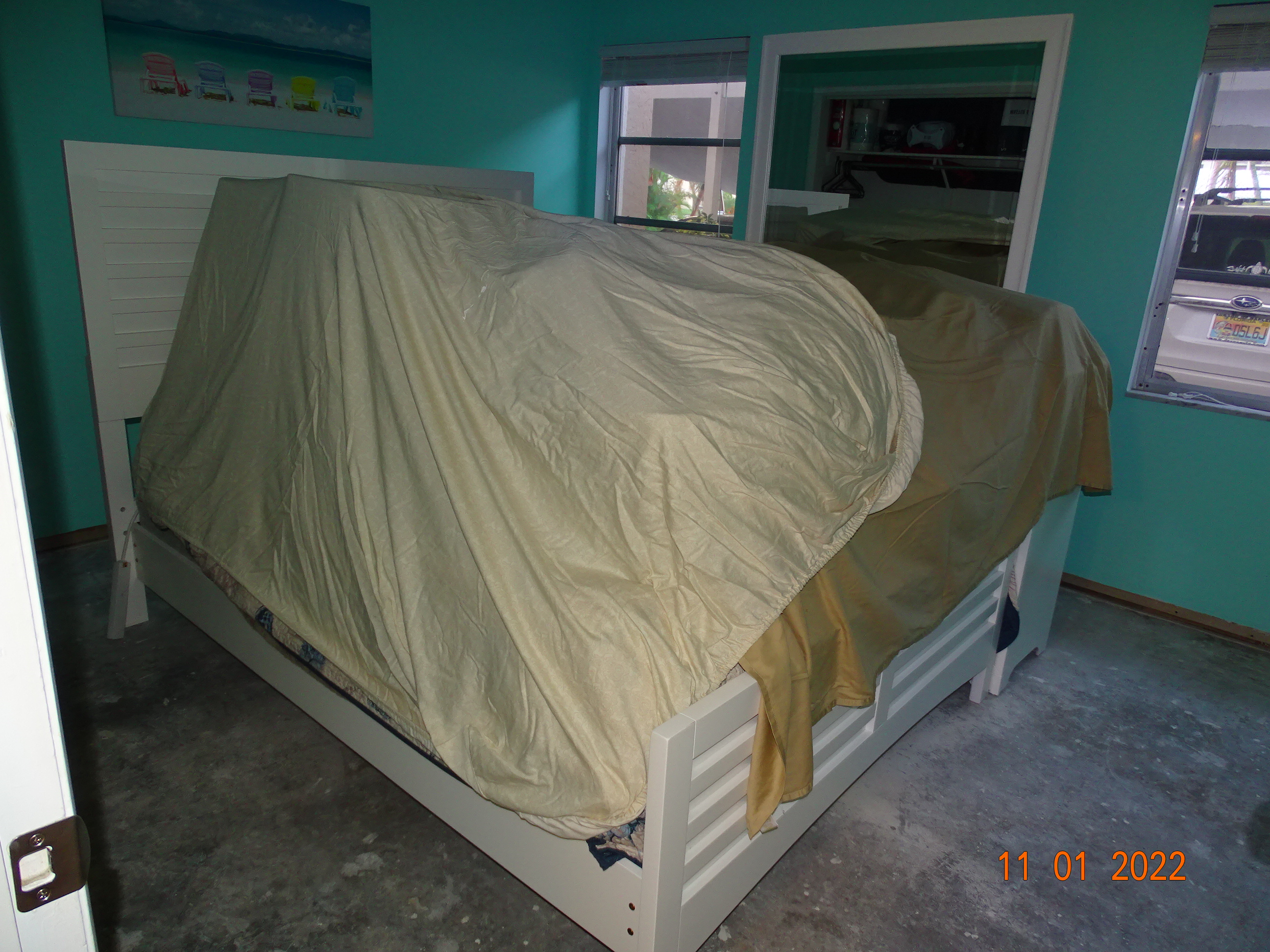 We covered everything with sheets to try to minimize the fur from you know who.
