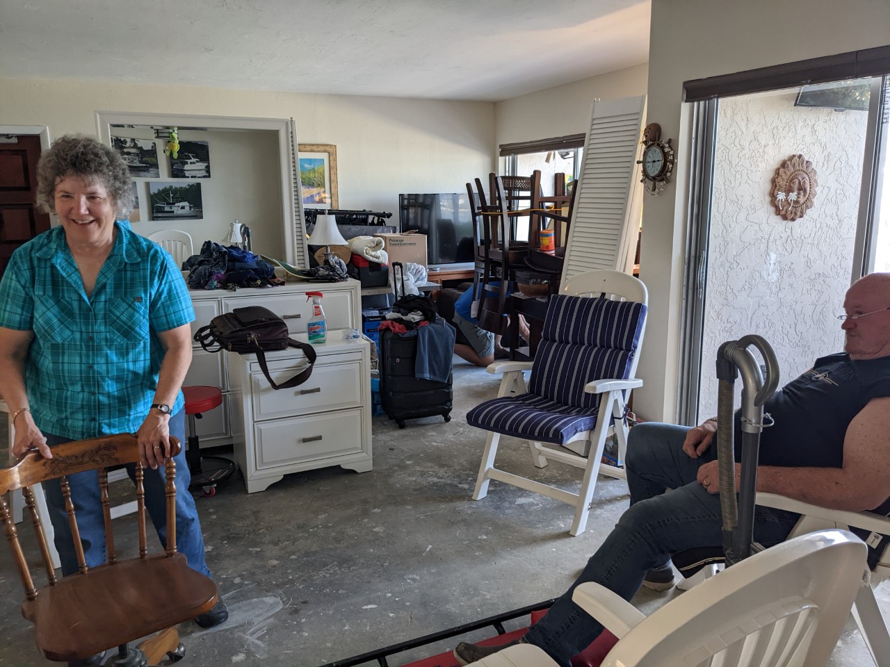 After we got back Friday morning, we went inside our condo to check out how things fared. Needless to say, any rugs or carpets we had on the the floor were soaked. So the first thing to do was rolling them up and setting them at the curb. It is surprising how heavy they got LOL.