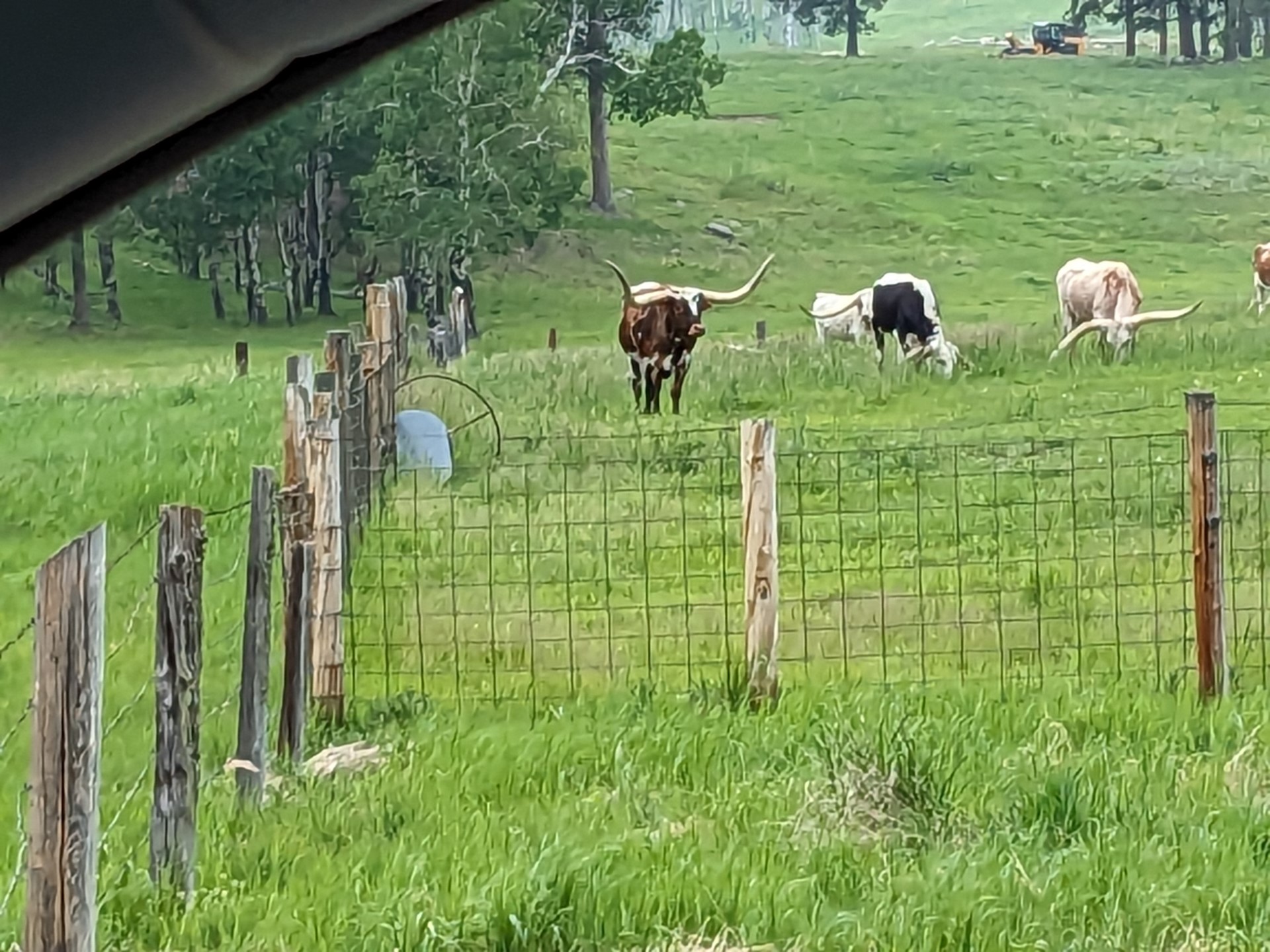 On the way back to the campsite, there was a “farm” that had buffalo and long horn steers. I’d never seen a long horn in real life before