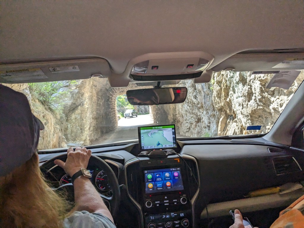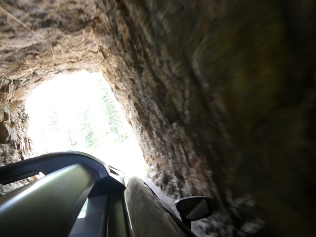 See the scrapes on the roof where someone’s car was too tall. And speaking of tall, we saw a tour bus on the road! And there really aren’t any places for something like that to turn around. I wonder if it’s stuck in one of the tunnels